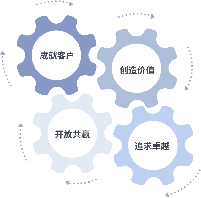 成就客户是一切决策的出发点,创造价值是衡量所有工作的标准,追求卓越是333体育做事做人的态度,开放共赢是333体育的格局也是最终的结果。价值观的齿轮环环相扣,推动着组织里的每个人不断向前。